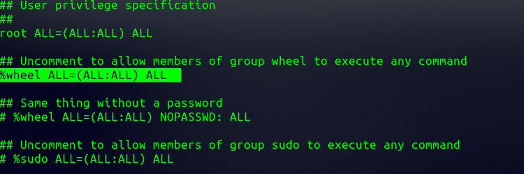 Потом снимаем решетку # со строчки %wheel иногда может быть просто wheel