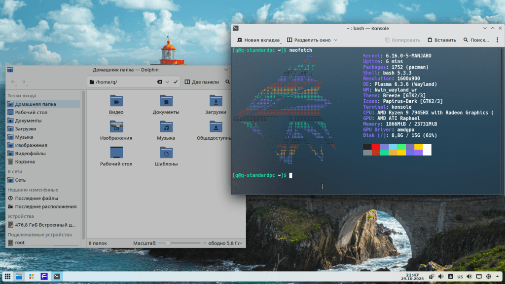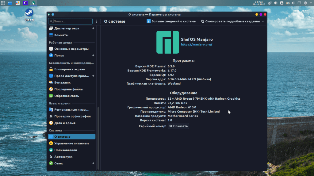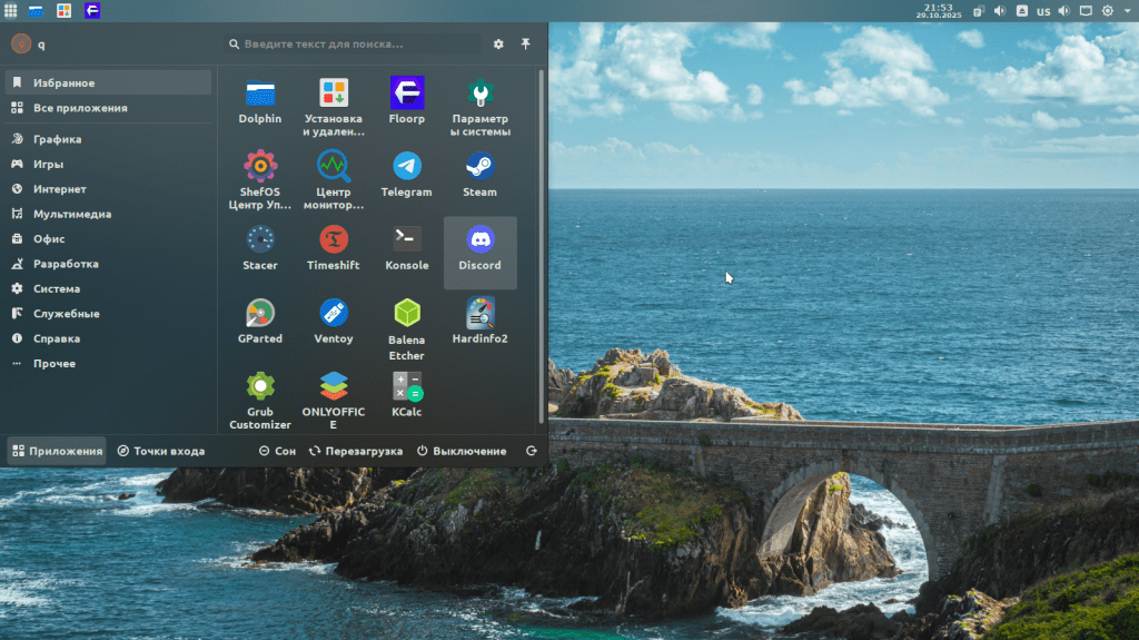 Оптимизированная система с настроенным рабочим столом KDE на борту и слегка украшеной темой офрмления близкой к стандартному виду KDE .