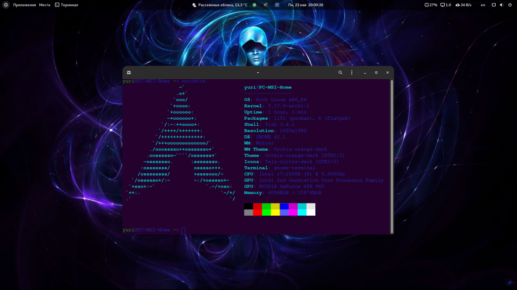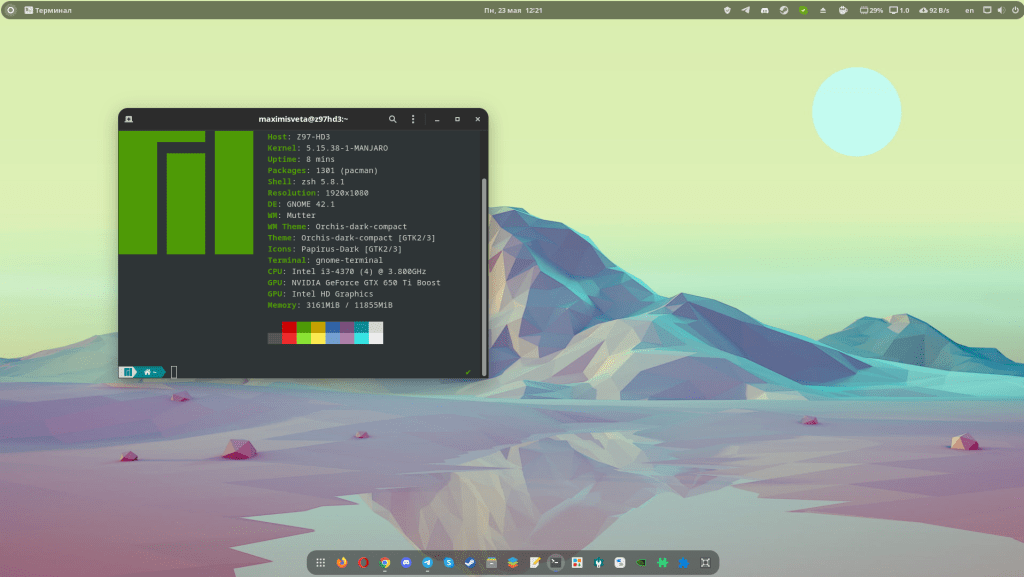 Скриншоты пользователей Manjaro-Gnome Manjaro-I3WM EndeavourOS Manjaro-Gnome Arch-Gnome Gentoo-KDE Arch-I3WM Artix-Xfce4